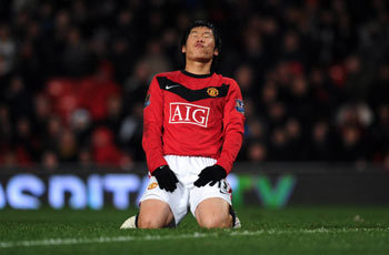 2日举行的英格兰联赛杯8强赛上,朴智星效力的曼联队主场迎战托特纳姆热刺队。朴智星在射门偏离球门后,失望的坐落草皮上。最终,曼联以2比0获胜。朴智星当天踢满了90分钟的比赛。