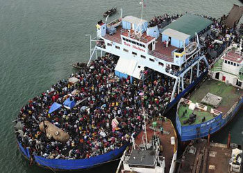 “海地大迁移”! 16日,因为无法忍受地震灾害、缺乏生活必需品、治安紊乱等恶劣的环境,许多海地人计划离开海地首都太子港。海地首都附近的船只上装满了人,就连甲板上也很难找到可以放脚的地方。