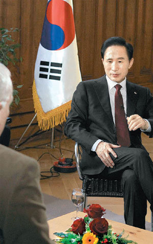 28日(当地时间),李明博总统在瑞士达沃斯亚历山大酒店,接受了BBC世界新闻主播聂高英的采访。李明博总统说:“今年,只要是对韩半岛的和平及解决朝鲜核问题有所帮助,没理由不和朝鲜国防委员长金正日,进行会晤”。