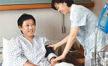 通过美国骨髓库捐赠并接受骨髓的两名韩国人缔结了姻缘,这真是惊人的巧合。手术日期临近,约定捐献骨髓的美国籍的张贤珍正在首尔的一家医院测量血压。