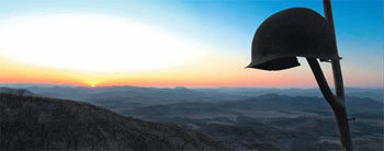 记者在江源铁原郡白马高地西侧的民统线内部京畿涟川郡钥匙展望台观望了非武装地带(DMZ),无声的、弯曲的丘陵叙述着韩半岛的历史。