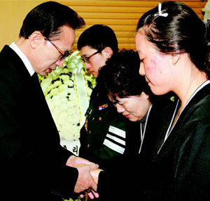 2日,韩国总统李明博访问了位于京畿道城南市国军首都医院的遗体告别室。李明博总统亲自为天安号失踪者搜救工作中殉职的韩柱浩准尉的灵堂上献花,并慰问了死者家属。