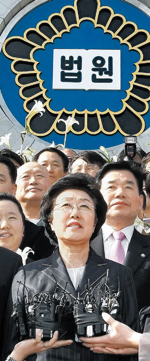 韩国首尔中央地方法院9日判决前国务总理韩明淑收受5万美元的指控不成立。当天上午,她在法院前门表示:“这是既远又艰难的道路。”