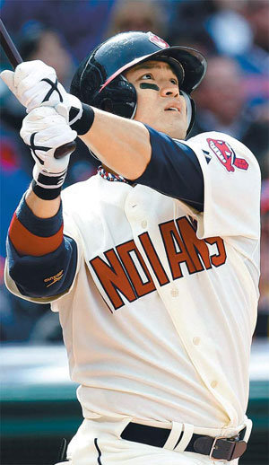 克利夫兰队队员秋信守在第一回合击出得克萨斯州队首发投手James Richard Harden的投球后,目送球飞向场内右侧中间方向。这一棒在击到球的一瞬间就能够看出是一记漂亮的本垒打。
