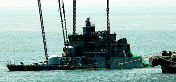 在天安舰舰首沉没28天的23日,天安舰在白翎岛南方海域渐渐浮出水面。天安舰打捞组成功将向右侧倾斜90度的舰首扶正。海军和打捞组将于24日起正式开展打捞工作。