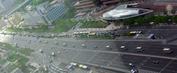 访华的金正日国防委员长5日下午抵达北京。包括金委员长乘坐的专车在内数十辆轿车当天下午3点许经过长安街建国门附近。
