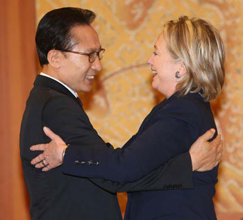 26日下午,李明博总统在青瓦台会见了于当日访韩的美国国务卿希拉里•克林顿。克林顿长官说道,“李明博总统发表的与天安号相关的谈话,既慎重又充分展示了他的领导力”“美国政府将继续支持韩国政府”。