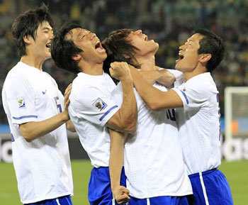 在4900万国民的助威下,太极战士敞开了关了半世纪的“世界杯门”。从1954年瑞士世界杯开始出赛的韩国足球队,2010年在南非共和国世界杯上,时隔56年后首次实现了在远征大赛晋级十六强的目标。23日,韩国在B组最后一场小组赛,和尼日利亚2比2打成平手,并以1胜1平1负的成绩晋级十六强。在1比1同分的后半场第五分钟,以绝妙的任意球射进球