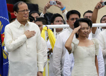 30日,在菲律宾马尼拉举办的第15代总统接任仪式,上个月当选的贝尼尼奥•阿基诺三世(Benigno Simeon Cojuangco Aquino III•左侧)当选人和前任总统玛丽亚•格洛丽亚•马卡帕加尔-阿罗约(Maria Gloria Macapagal-Arroyo)一起敬了礼。阿基诺总统当天通过就任辞表示:“我会调查有关阿罗约总统的所有疑惑”,从而强调了腐败行为的剔除与经济发展等。