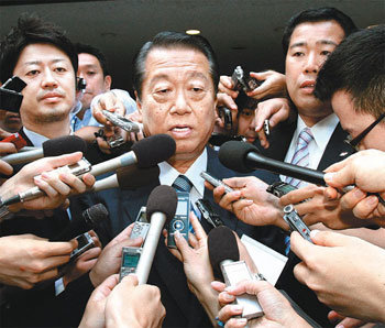 26日,前民主党干事长(中间)小泽一郎正在日本东京召开的记者招待会上回答记者提问。当天,小泽一郎参加了党首竞争选举。日本政界很有可能因小泽一郎竞选而出现混乱局面,日元价值也有可能随之上升,金融市场面临不稳定局势。