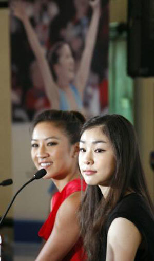 8日,金妍儿(20岁)与关颖珊(30岁•美国)在美国洛杉矶附近的伯班克Pickwick Ice Center召开了记者招待会。然而,此次记者招待会实际成为了即将于10月3,4日在洛杉矶斯台普斯体育中心举行的“2010年All That Skate LA”的宣传会。金妍儿与关颖珊在冰场进行20分钟左右的练习表演后,换上服装,在闪烁的照相闪光灯照耀下进入了记者招待会现场。