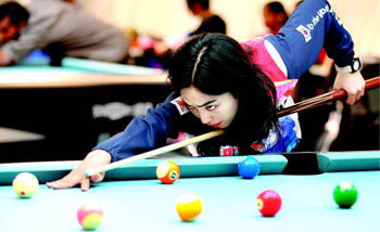11日,韩国美女台球天后车游岚正于中国广州的亚运村体育馆进行训练。这位夺冠热门选手的眼神中,充满了对金牌的渴望。