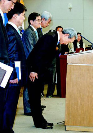 4日上午,外交通商交涉本部长金宗壎在首尔钟路区世宗路外交部大厅发表韩国与欧盟(EU)签署的自由贸易协定(FTA)韩文译文的再确认结果,对因此让国民操心表示了歉意。