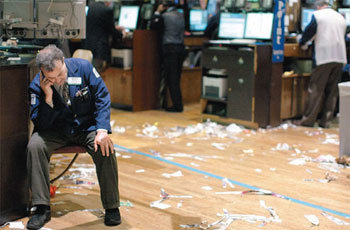 18日(当地时间),从欧洲开始的全球股市全线暴跌,使各国的投资者陷入绝望。当天,美国纽约证券交易所的主要指数下跌了3%-5%,像台风过后般的废墟。