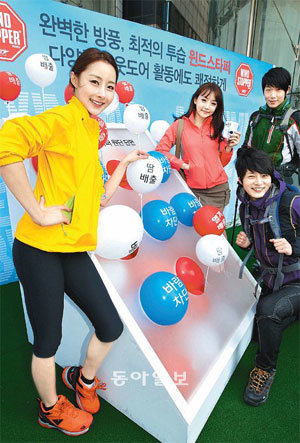 25日,戈尔韩国(生产戈尔铁丝等性能性产品的企业)在首尔钟路区东亚媒体中心的门口举办了OUTDOOR的“防风运动大衣”展示会。戈尔韩国表示这件夹克简便、防风、透湿性强,非常适合多项野外活动。