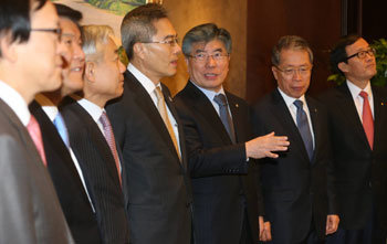 韩国银行总裁金中洙21日在首尔中区南大门路韩国银行本社举行的“金融协议会”上与其他商业银行行长进行了对话。金总裁当天嘱咐说:“银行要在激活经济上起到大作用。”