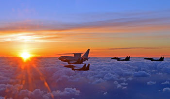 在新年,猎鹰也会严严实实地守护大韩民国领空。2013年癸巳年的前一天的12月31日,空军参谋长亲自乘坐的空中早期警报控制机“皮斯埃”和F-15K编队在东海上空进行战斗放哨飞行。
