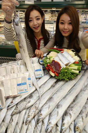 伊超市7日首脑购物在首尔龙山店推出了济州产冷冻刀鱼。这些是去年8—12月份捕捞的刀鱼,截止到10日每条价格将是4980韩元。