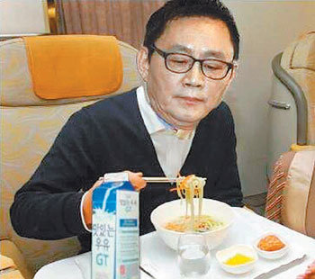 就尹昶重前发言人乘坐商务舱回国的事情,出现了模仿“POSCO能源常务的大韩航空拉面事件”的照片。尹前发言人坐在商务舱,以不满的表情望着拉面。拉面旁边是近日广受争议的南阳乳业的牛奶(左)。甚至出现南阳乳业方感谢尹昶重前发言人逃脱关注的模仿照。