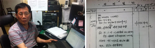 前5·18民主有功者遗属会长郑秀满(左)22日对东亚日报公开了5·18民主化工作运动当时的军队作战日志。其中有“要求安全护送宣抚(往特定方向诱导民心的行为)团员”的题目和“13点抵达全州,请采取措施让宣抚团员安全地抵达戒严工作站。”