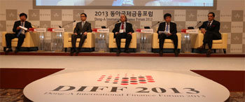 在上月31日召开的“2013东亚国际金融论坛”上,国内外汇率专家们围绕着最近汇率战争征兆对国际经济带来的影响,进行着讨论。此次讨论由首尔大学金素英教授(经济学)主持,环球财经研究院长宋鸿兵,韩国金融研究院长,BNP Paribas韩国代表迪耶斯(从左)出席了此次论坛。记者:张承允 tomato99@donga.com