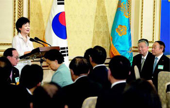 20日,韩国总统朴槿惠在青瓦台迎宾馆举行的民主和平统一咨询会致辞。朴总统称:“应建立常识和受国际规则尊重的韩朝关系。”