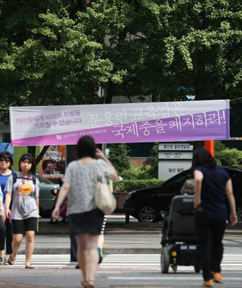 统合进步党在首尔麻浦区桃花洞麻浦地铁站附近的人行横道方面挂出了横幅。英勋国际中学的学生们每天都汇在该人行横道前面乘坐校车。一名学生表示:“每次看到横幅的时候就像是在乘坐运送罪犯的车辆。”