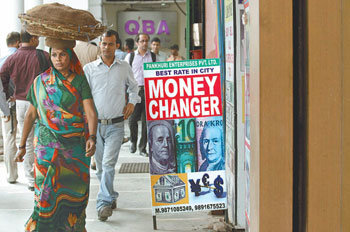 世界新兴国家面临着20年不遇的危机。20日印度卢比价值落到了史上最低值,包括印度尼西亚、泰国等新兴国家的通货价值也一齐跌落。19日在印度新德里,市民们正从货币兑换所边经过。