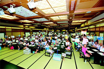23日,参加“韩中日少儿通话交流2013”的韩国和中国、日本的小学生们,正举着共同制作的图画动画书,灿烂地笑着。