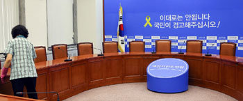 7•30补选的第二天31日,一名国会职员正在打扫空荡荡的首尔汝矣岛国会新政治民主联合代表室。没有一名工作人员的代表室好像反映着选举失败的气氛,看起来非常沉重、冷清。