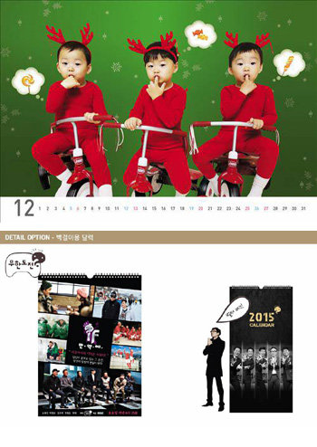 KBS2综艺节目《超人归来》三胞胎台历的火爆预定是今年圣诞节的一大亮点。在线购物网站Auction公布“从23日晚9时开始接受预定三胞胎台历,销量已经在25日上午突破了13万本。”由于三胞胎台历在其他10多处在线购物网站同样接受预定,因此整个销量预计达到数十万本。咨询板块充斥着各种留言,“能够近距离看到三胞胎真是令人期待”、“刚刚付款什么时候发货”等等。这本台历每本售价为5500韩元,是由三胞胎的父亲宋一国亲自拍摄,所有的收入将全部用于捐赠。