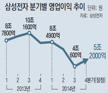 三星电子8日发表称,去年第四季度(10~12月)运营利润以5兆2000亿万韩元暂时回升。虽然较去年第三季度(7~9月)的4兆600亿韩元环比增长了28.08%,但较2013年第四季度(8兆3100亿韩元)同比减少了37.42%。