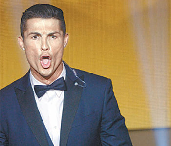 13日(韩国时间)国际足联(FIFA)2014年度颁奖盛典在瑞士苏黎世进行,最引人瞩目的2014年FIFA金球奖获奖者最终揭晓,C罗成功实现两连庄,这是他职业生涯第3次获此殊荣。