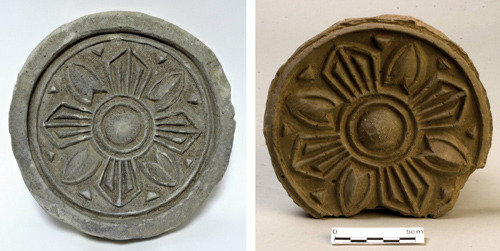 7日据广津区透露,在阿且山城南墙和山城内墙发现了高句丽的莲花纹装饰瓦“莲花纹瓦当”(照片)。此次发现的瓦当的形态与在阿且山城附近的高句丽遗址红莲峰1号堡垒中出土的瓦当相同。