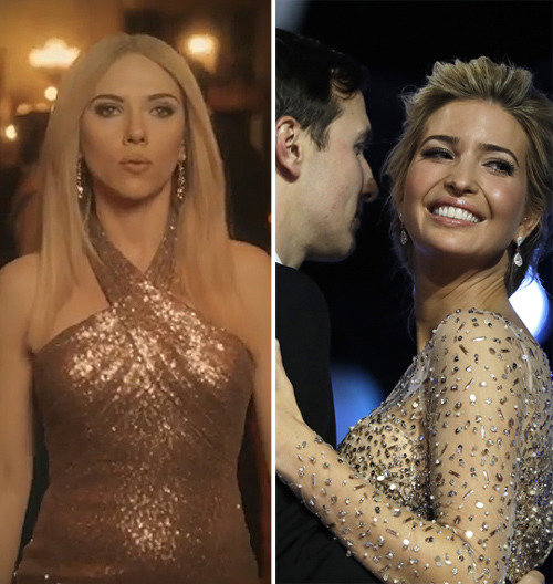 扮演伊万卡的约翰逊是纽约人,被认为是好莱坞里代表性的进步倾向女演员。她还参加了特朗普上任的次日即1月21日在华盛顿举行的反特朗普示威“妇女大游行”。