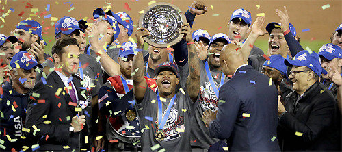 美国队主教练吉姆•李尔兰德在第7局斯特劳曼取得首个安打后马上把他从投手踏板上换了下来。总投球数73个,离每轮次限制标准(冠军轮95个)还有余地,但主教练选择早早换下斯特劳曼在为了让他提前得到观众起立鼓掌的同时,主要是考虑到了即将到来的新赛季。被选为大赛最有价值球员(MVP)的斯特劳曼比赛结束后表示在自己的推特上留下了“冠军”一词。
