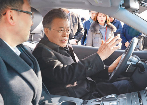 2日,文在寅总统在京畿城南市板桥企业支援中心举行的无人驾驶汽车座谈会上说了上述这一番话。当天,文总统乘坐由现代汽车制作的氢电混合无人驾驶汽车“NEXO”,从京釜高速公路会面广场服务区一直到了板桥出入口,区间全长7公里左右。这是文总统继前一天访问在缩短劳动时间和创造新工作岗位方面,劳资双方达成和解的韩华QCELLS工厂并发表鼓励讲话后,连续两天访问大企业,出面进行“拯救企业”的工作。