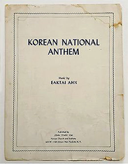 美国纽约韩人会移民史博物馆于当地时间11日(当地时间)表示,将展示1944年在美国制作的安益泰先生的《爱国歌》英文乐谱。据推测,这是当今世界最古老的爱国歌英文乐谱。大韩民国行政安全部国家记录院保有的最古老的爱国歌英文乐谱是在1956年制作的。