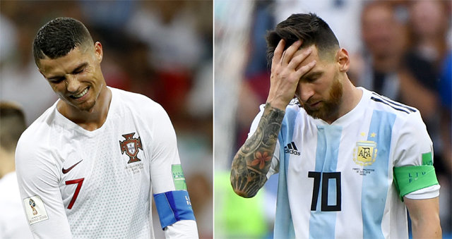 梅西和罗纳尔多没能战胜世界杯给予他们的沉重负担。按照国际足联(FIFA)的说法,两人被“淘汰赛魔咒”束缚住了。梅西在世界杯淘汰赛(16强以后的比赛)8场比赛中尝试过23次射门,但始终未能取得进球。罗纳尔多在俄罗斯世界杯小组赛中上演了帽子戏法,总共攻入4球,但他在6场淘汰赛比赛中尝试25次射门,也始终没能成功破网。