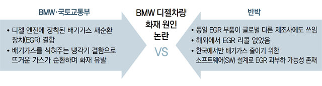 韩国宝马公司和国土部声称,起火原因是尾气排放再循环装置(EGR)的模块出现异常,并于上个月26日宣布召回汽车。尾气排放再循环装置是为了减少柴油车产生的氮氧化物排放量,而把尾气降温后在内部再次循环的装置。超过400度的尾气在尾气排放冷却机中冷却后,在发动机中再次燃烧。问题是,如果冷却尾气的冷却机出现漏水等缺陷,就会导致高温气体流入吸气管线,从而使其产生漏洞。宝马方面主张,随着高温气体从这一漏洞中泄漏,汽车会过热并发生火灾。