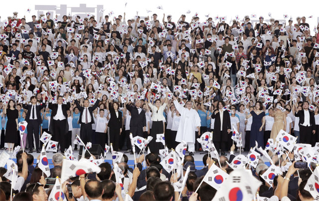 文在寅当天在首尔龙山区国立中央博物馆举行的光复节及政府成立70周年庆祝仪式上表示:“南北之间出现稳定的和平,南北人民自由往来,成为一个经济共同体,才是真正的光复。”