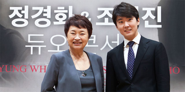 韩国第一代小提琴演奏家郑京和(70岁)在10日举行的双人音乐会座谈会上,对合演者钢琴家赵成珍(24岁)大加赞赏:“只要一句话,他就能理解。他对音乐的敏锐感是天生就有的。”从本月1日开始展开全国巡回演出的两人将于12日在首尔瑞草区艺术殿堂举行“艺术殿堂30周年纪念演出”。这是继2012年对钢琴家评定十分苛刻的郑京和,选拔了当时还是高中生的赵成珍并一起登台表演之后,6年以来的第一次。