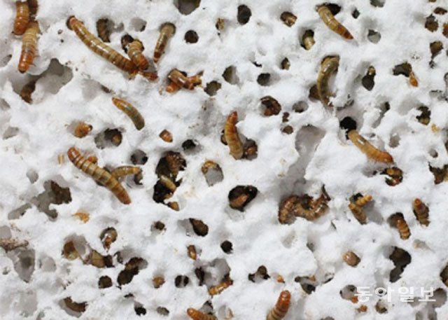 此前的2015年,美国斯坦福大学研究小组确认了黑褐色的甲虫“拟步甲”的幼虫(大麦虫,mealworm)可以摄取塑料的一种“聚苯乙烯(polystyrene)”。另外研究小组还发现了,幼虫将食用的东西转化成二氧化碳和排泄物排出体外的事实。