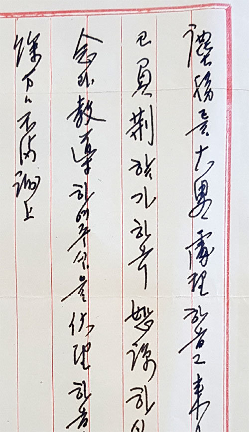 先生还是一个好行政家。开始写字时,上面的空白几乎没有,说明富有积极性。从横的间距和字的间距都比较宽这一点上,可以看出,先生善于适应新环境,但小心谨慎、深思熟虑。越往右越往上走的笔画,意味着积极的思考,长长的横线和竖线意味着耐心强,工作完成得好。先生拖着年迈之躯与金九一起创建光复军,后因疾病殉国,留下了临时政府下属三个政党要团结一心的遗言,最终实现了这一愿望。 律师、笔迹研究家