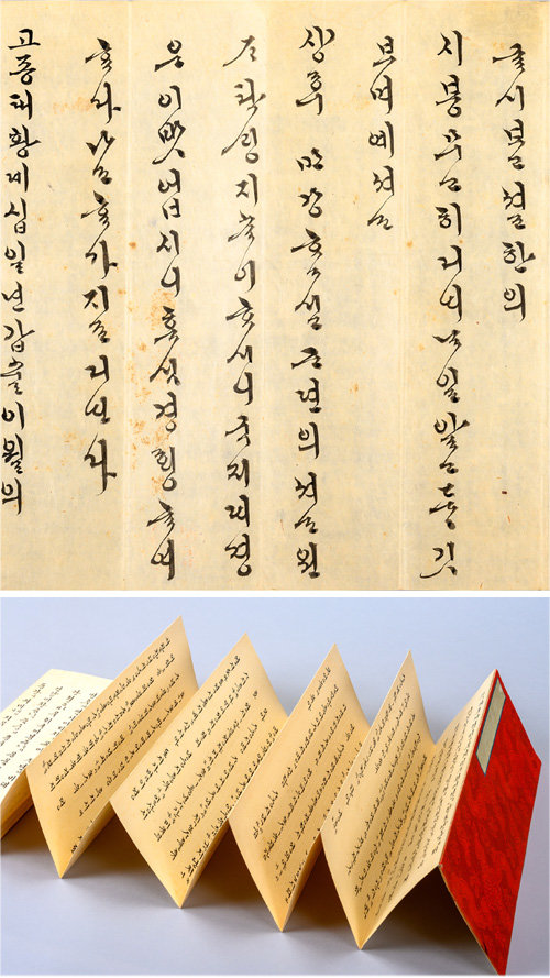 纯元王后写给女婿尹宜善的信也非常有意思。整齐的字里行间透露着纯元王后担心患有感冒和咳嗽的女婿,以及德温公主进了宫心里变踏实了等情感。德温公主的养子尹用求受高宗指示,整理从中国上古时代到明朝末年的历史,并翻译成韩文的书籍《正史纪览》和尹用求为了女儿尹伯荣摘录整理与女性有关的历史的《女史抄略》等也包括在内。尹用求是高宗时期担任吏曹•礼曹判书的官僚,而且写着一手好字体,1910年韩日强制合并后,他拒绝了日本帝国主义给的男爵爵位,是一位真正的忧国之士。