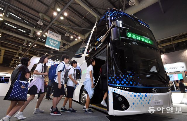 现代汽车首次公开了双层电动公交车。29日,现代汽车表示,在截止到本月末为止在京畿高阳市一山Kintex举行的国土交通技术大展上首次公开了双层电动公交车。现代汽车从2017年12月开始,在18个月的时间里完成由国土交通部支援的韩国型大容量双层电动公交车的课题,开发了该车辆。