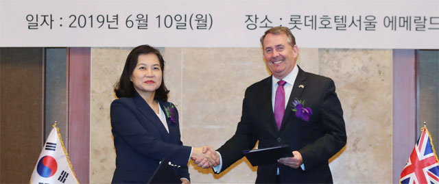 10日,韩国通商交涉本部部长柳明熙和英国国际通商长官福克斯在首尔中区小公洞乐天酒店正式宣布:“原则上已妥善解决了韩英FTA协商。”目前,韩国向英国出口商品的99.6%根据韩-欧盟FTA不征收关税。但是,在韩英FTA尚未达成协议的情况下,英国退出欧盟后,韩国向英国出口时,需要交纳10%的汽车关税、4.5%的汽车零部件关税等平均4.7%的关税。
