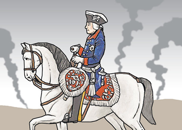 这样的弗里德里希在实战中也多次失败。判断失误则更多。以最初战败的科林战役为例,敌军在兵力上多出了2倍,占据着有利地形,弗里德里希大帝却选择盲目进攻,最终败北。原因是他轻视奥地利军队。后来,他承认打了一场不该打的战斗是战败的原因,把责任完全归结在自己身上。