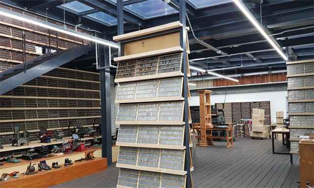 这里有3500万字的活字和字模(为使浇上铅后出现活字字面而刻字的版)、铸字机。这些都是从韩国最后一家活字制造工厂“第一活字”那里转移过来的。还有在大邱峰镇印刷所启动的活版印刷机和裁剪机、从忠武路印刷胡同带来的折页机和无线装订机等。通过文选(挑选活字的工作)自己的名字制作书封面,进行装帧的体验项目不仅受到孩子们的欢迎,还深受成年人的欢迎。李相基研究员说:“对于最近的孩子们来说,蘸墨水印刷是在哪里都很难尝试的新体验,对于大人们来说,这是召回记忆的过程。虽然活字看起来正在消失,但是游客们通过在这里能亲身感受到文字的体验会接受活字。”