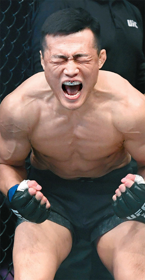 21日,郑赞成在釜山社稷体育馆举行的“UFC Fight Night釜山大赛”(UFC釜山)主要比赛上,面对轻量级冠军出身的“活着的传说”弗兰基•埃德加(38岁•美国•第4位),在第一回合仅耗时3分18秒就以TKO(技术性击倒)的方式战胜对手,成为韩国格斗历史上拥有挑战“大权”身份的第一人。